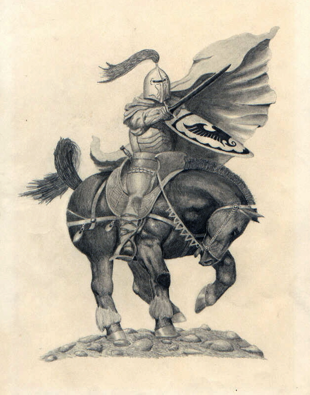 | Knight, (~1976). The model for this was a Frank Frazetta cover for The Outlaw of Torn by Edgar Rice Burroughs. |